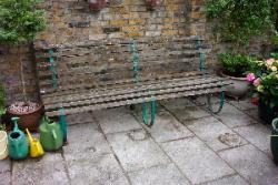 The garden bench from Little Boston HouseThey also inherited an old garden bench which moved with them to Elers Road. What was a surprise was to discover that this was the self same bench which Joan Bellefeulle was sitting on in the photo of the garden of Little Boston over 70 years ago – Joan was delighted that the old family bench had given such sterling service over the years.